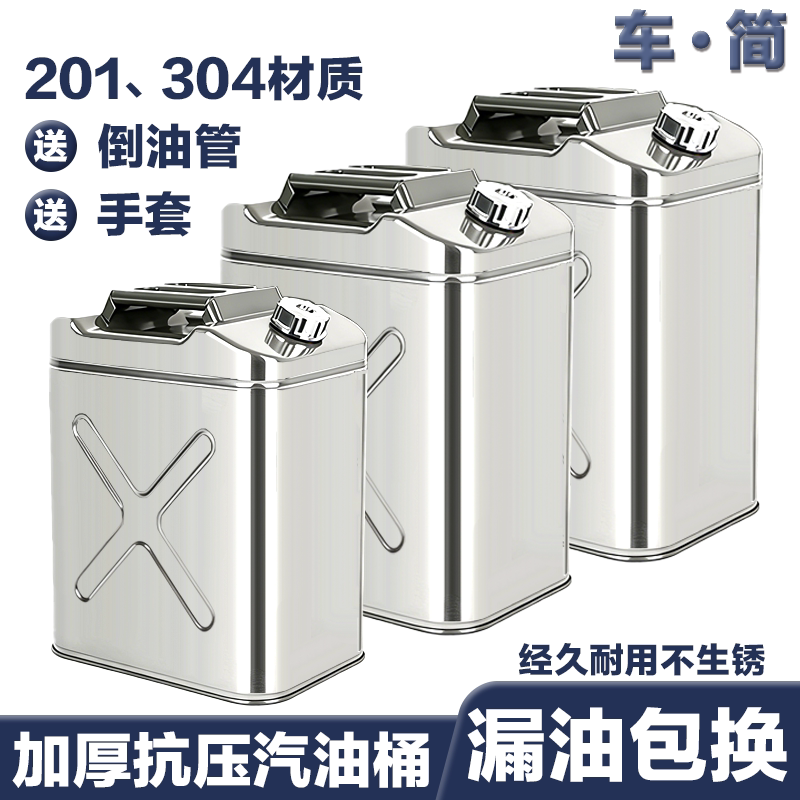 加厚304不锈钢汽油桶油桶30升20升10L柴油桶壶201汽油专用桶油箱