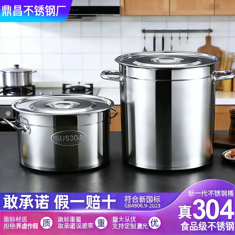 304不锈钢汤桶特厚家用带盖不锈钢汤锅商用米桶油桶大容量储水桶