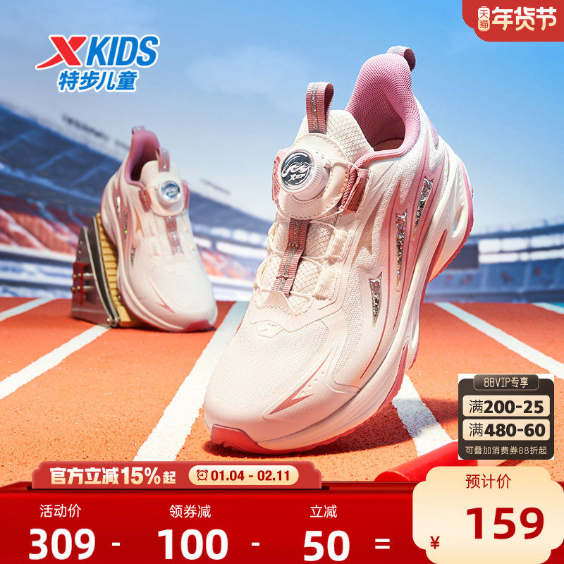 【龙翼】特步童鞋秋季新款女童跑步鞋旋转扣儿童运动鞋中大童跑鞋