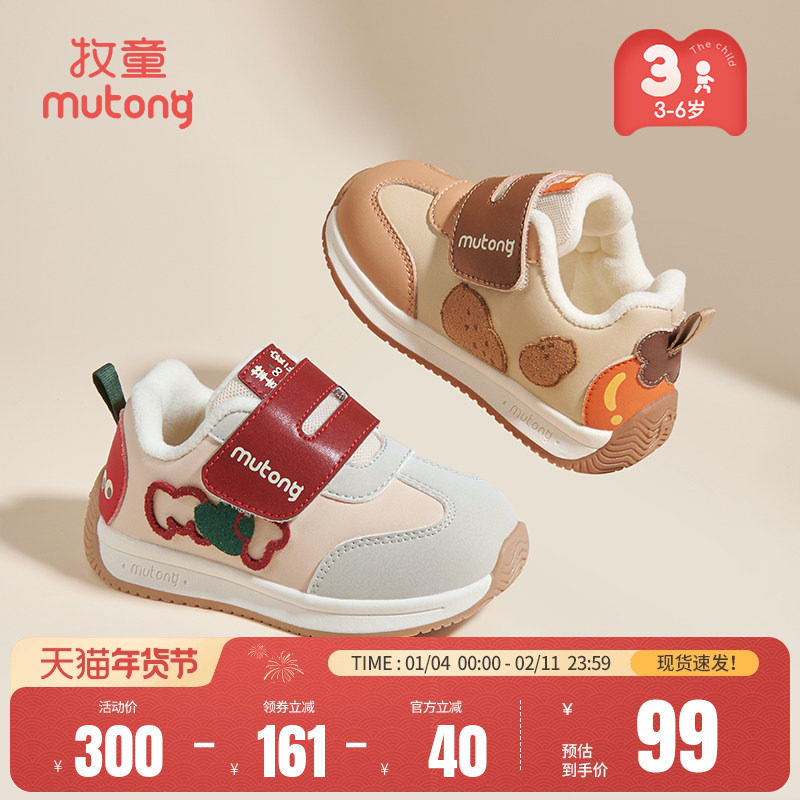 牧童儿童运动鞋秋冬轻便缓震平安果幼儿园鞋红色男童女童跑步鞋子