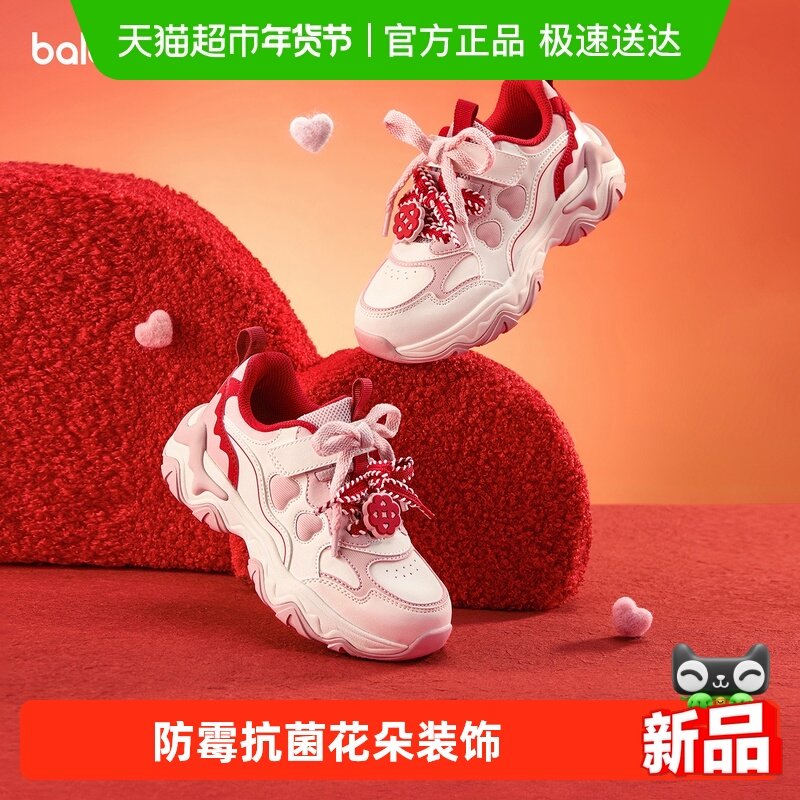 巴拉巴拉儿童运动鞋女童跑步鞋大童鞋子红色2026秋冬新款童鞋新年