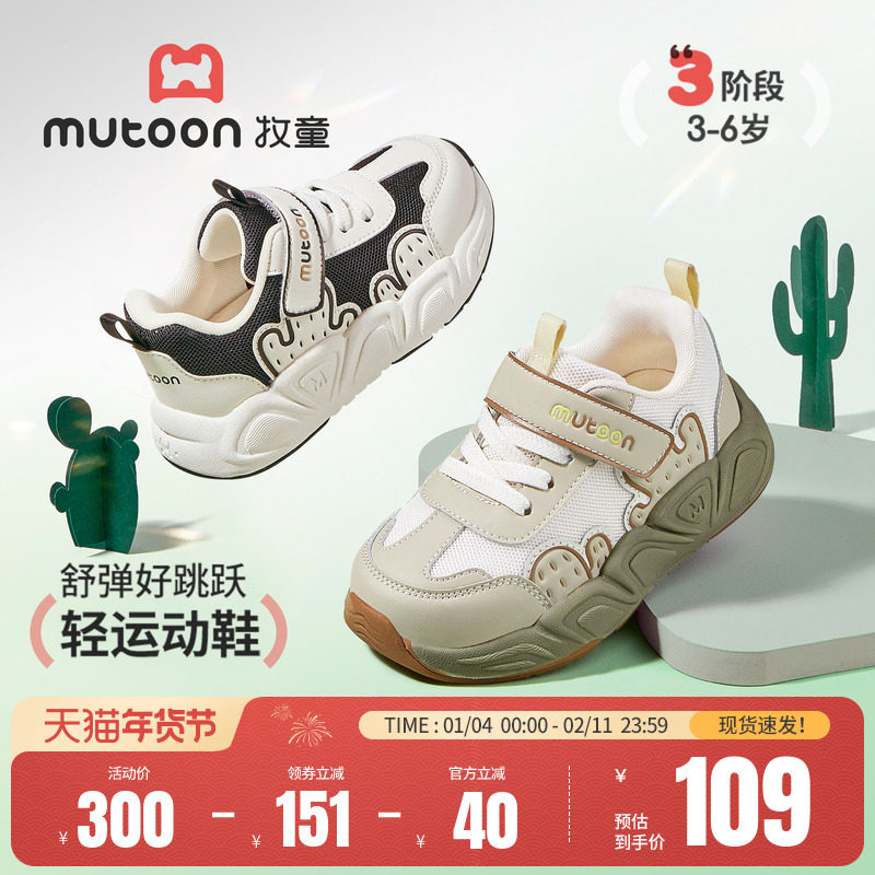 牧童儿童运动鞋2026春季新款卡通仙人掌男童鞋轻便缓震女童跑步鞋