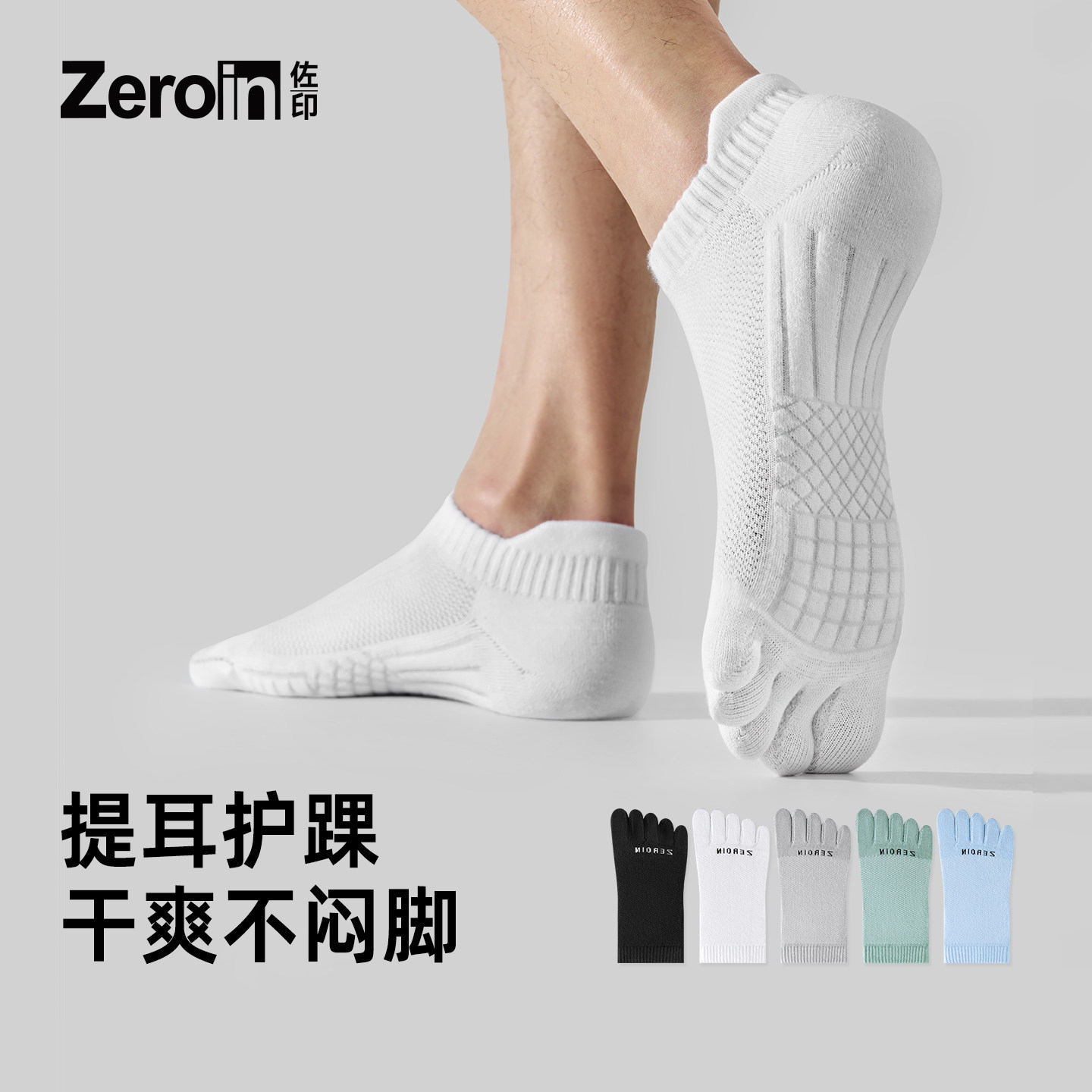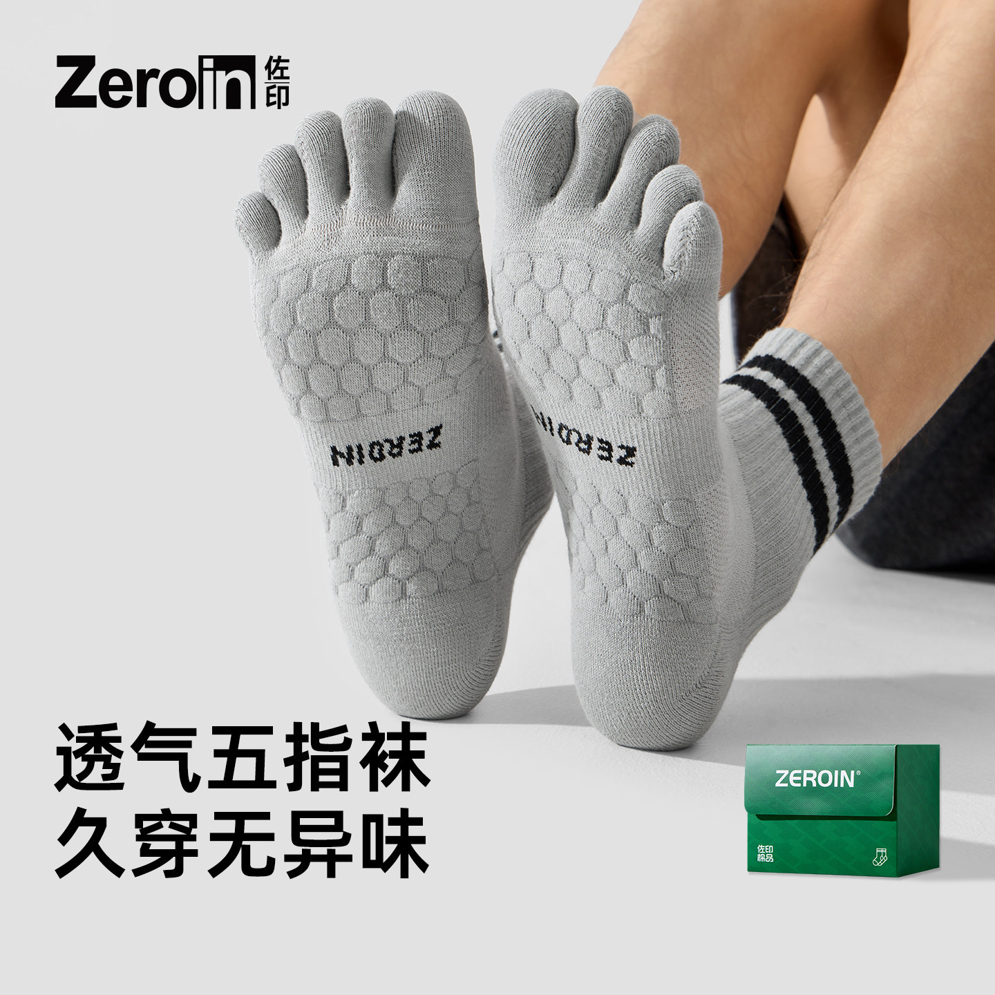 佐印男士五指袜纯棉纱线夏薄款吸汗防臭运动毛巾底分趾袜男无骨袜