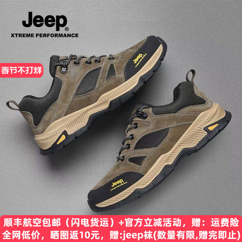 jeep男鞋休闲户外登山鞋男中老年旅游鞋父亲运动鞋防滑软底爸爸鞋