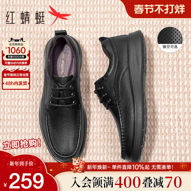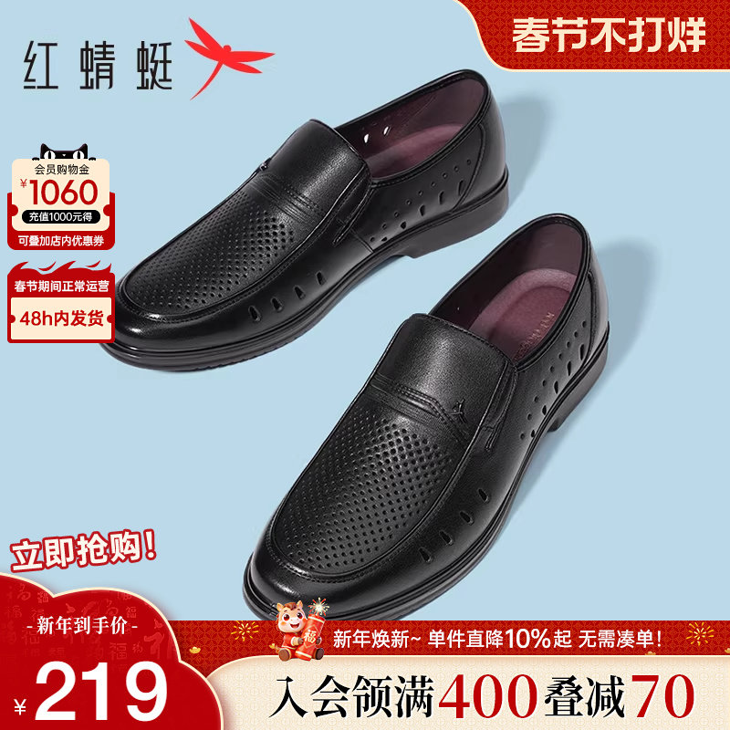 红蜻蜓皮鞋男2026春季真皮镂空透气中老年爸爸皮鞋父亲鞋休闲男鞋