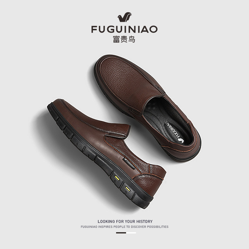 富贵鸟休闲皮鞋男款真皮男鞋秋冬中老年爸爸鞋商务软底父亲乐福鞋
