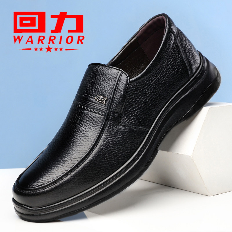 回力男鞋春秋真皮休闲皮鞋男中老年一脚蹬透气爸爸鞋防滑父亲鞋子