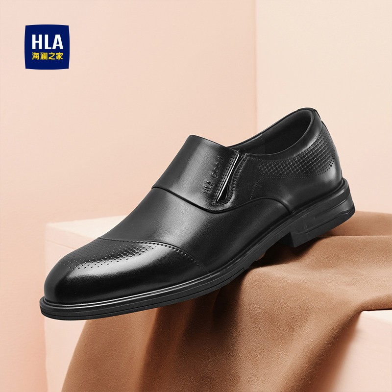 海澜之家男鞋秋冬季商务休闲皮鞋男真皮父亲软底套脚中老年爸爸鞋