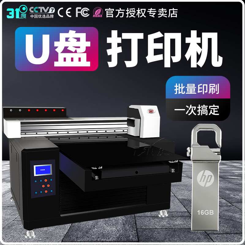 31度UV打印机u盘亚克力塑料金属鼠标垫手机壳标牌铭牌喷绘印刷机
