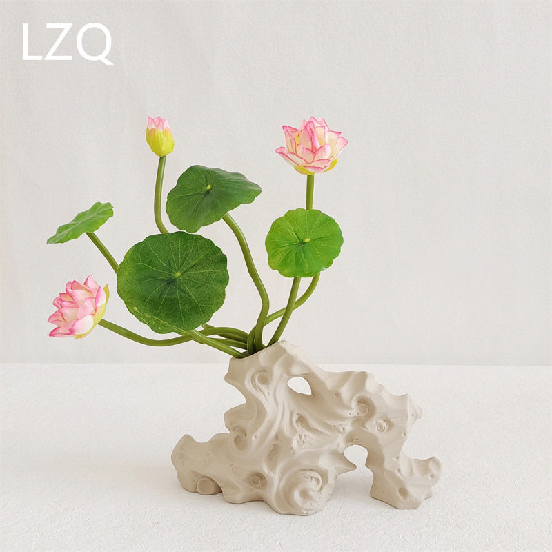 仿真小荷花莲花水池景观装饰花酒店餐品装饰小摆件假花鱼缸造景花