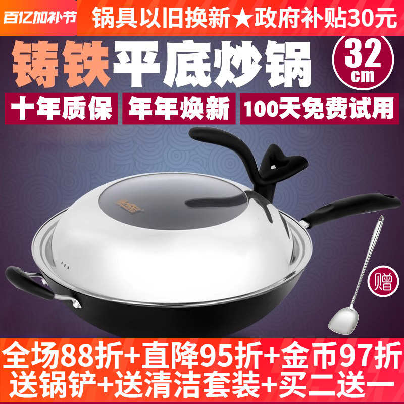 章丘苏美冠不粘锅老式铁锅官方旗舰炒菜锅炒锅家用无烟无涂层圆底