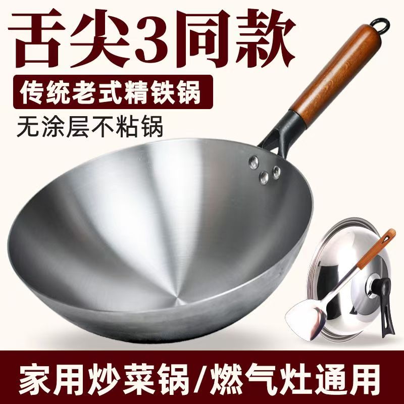 章丘手工铁锅老式铁锅家用炒锅不粘锅燃气灶适用无烟炒菜锅无涂层