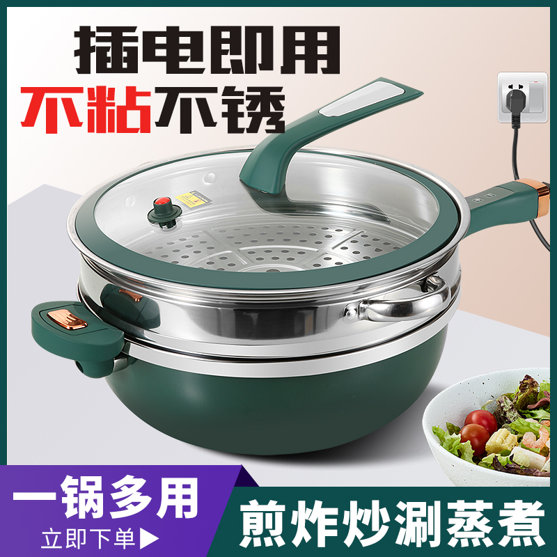 家用多功能炒菜锅无烟不粘锅电煮锅一体式加厚炒菜锅宿舍插电炒菜
