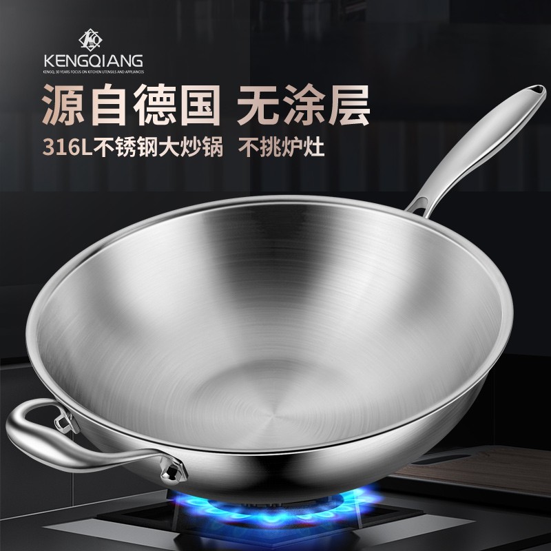 苏泊尔316L不锈钢炒锅家用平底近无烟不粘锅炒菜锅电磁炉燃气通用
