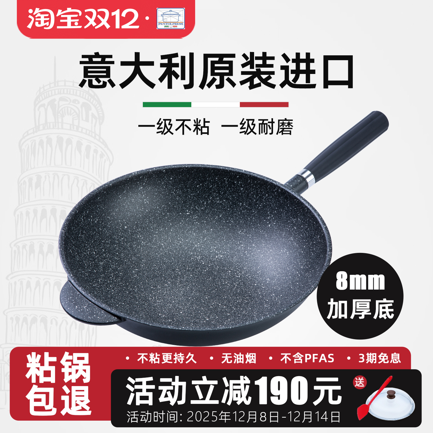 pentolpress意大利进口无烟不粘锅炒锅麦饭石家用煤气灶专用不沾