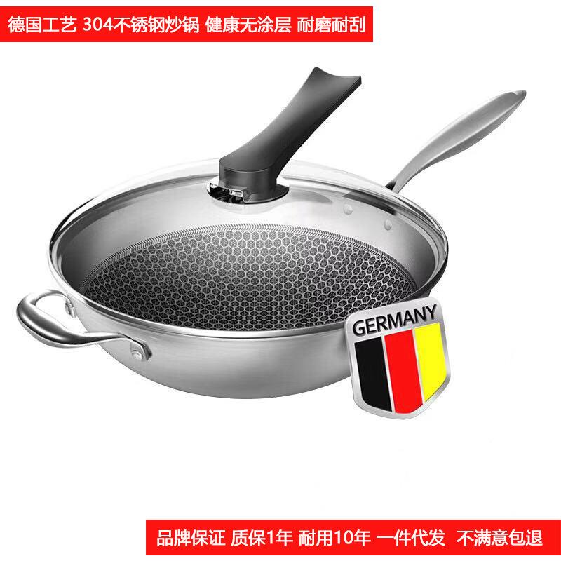 直销新款爆款 锅 304不锈钢炒锅蜂窝炒菜锅无烟不粘锅礼品套件锅