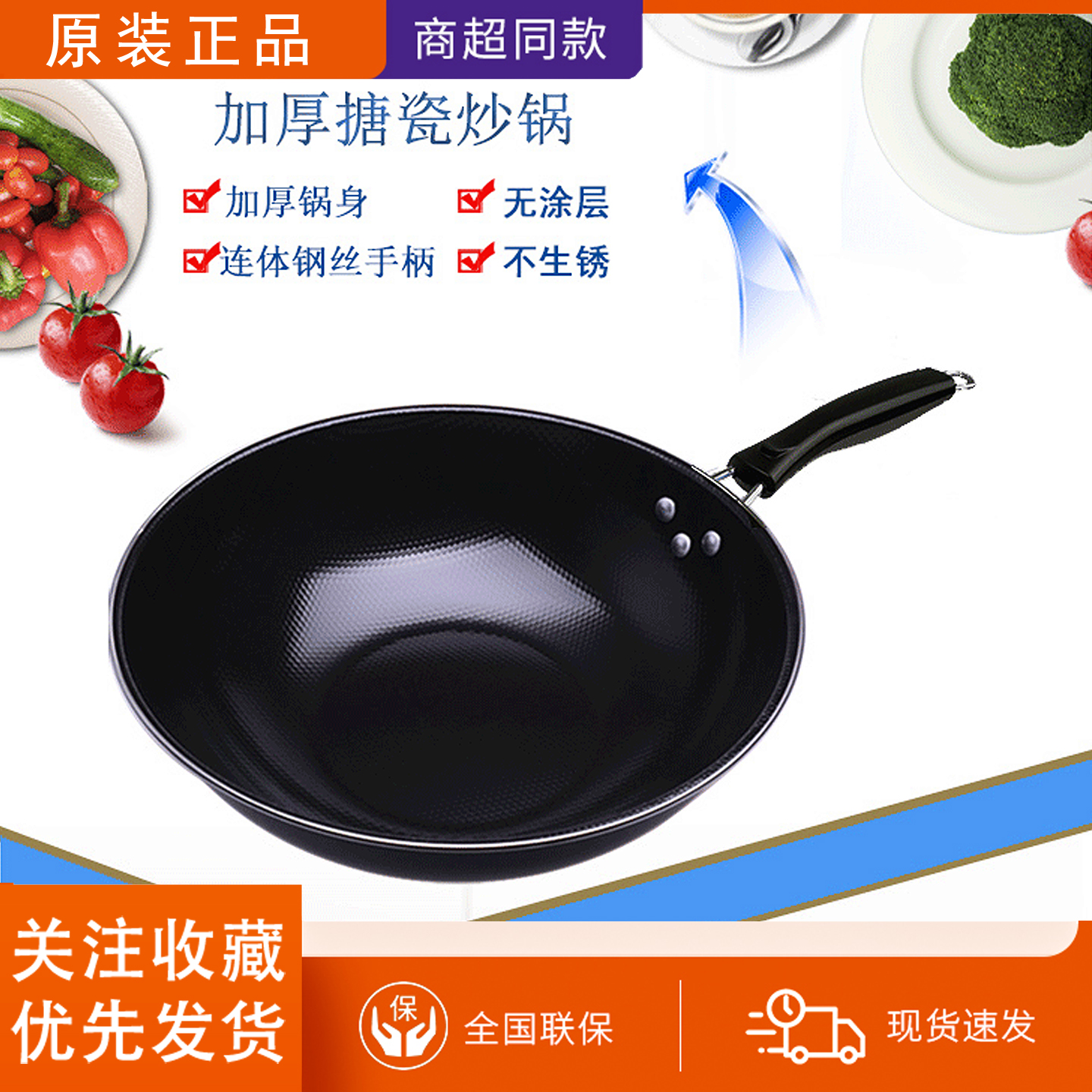 家商用搪瓷炒锅加厚炒锅无烟不粘锅无涂层铁锅不生锈铁锅30-32CM