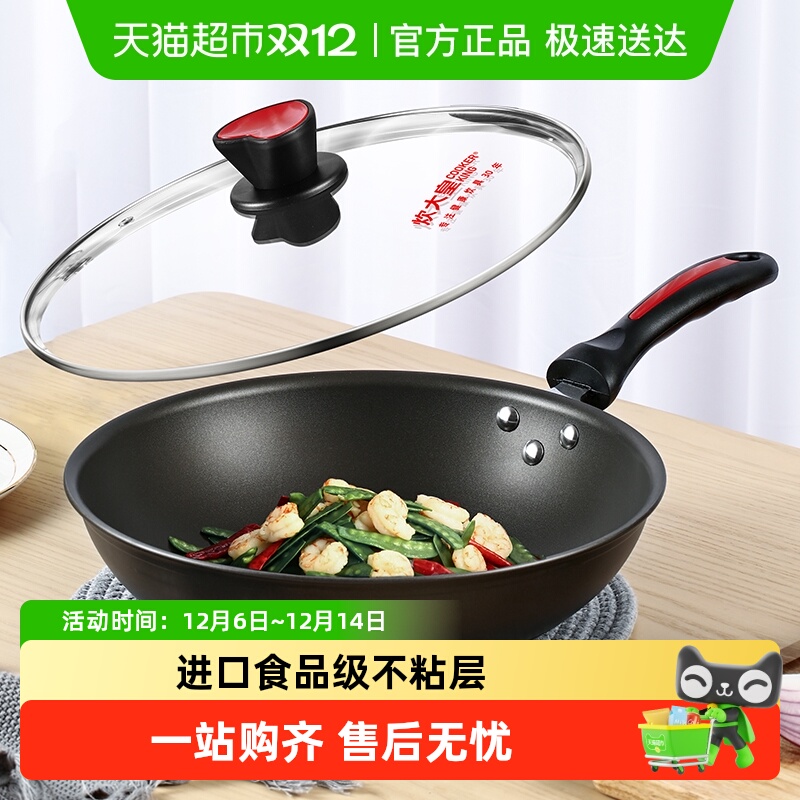 炊大皇无烟不粘锅家用炒锅平底锅36cm大号炒菜锅电磁炉燃气灶通用