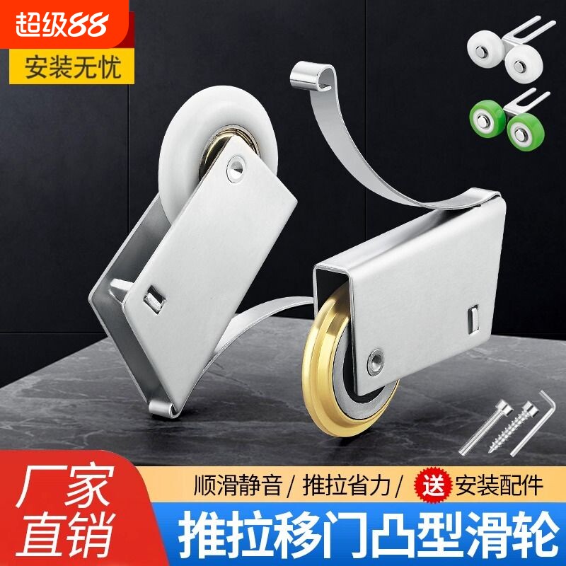 顶谷加厚不锈钢滑轮推拉门衣柜门吊轮下轮移门地轨道卫生间滚轮子