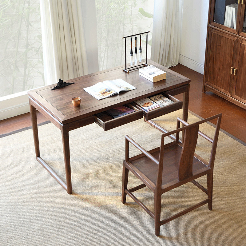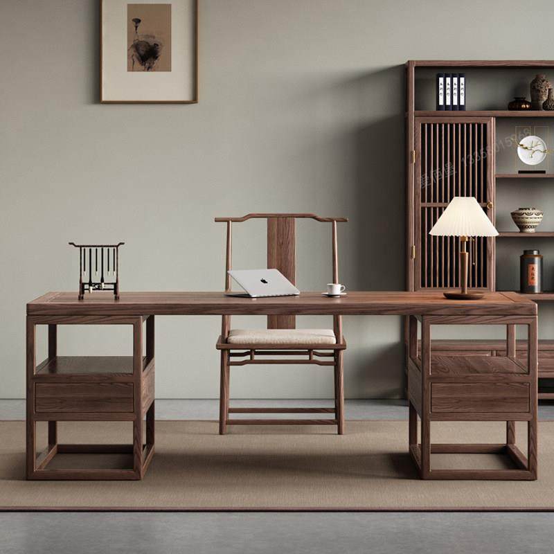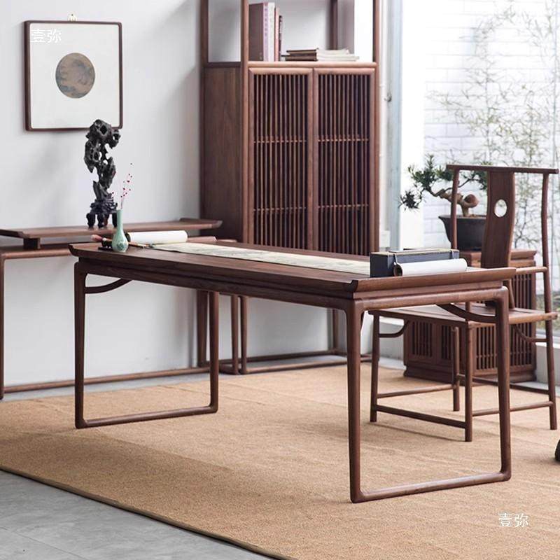新中式书桌实木北美黑胡桃木禅意办公书房书法写字台画桌定制家具