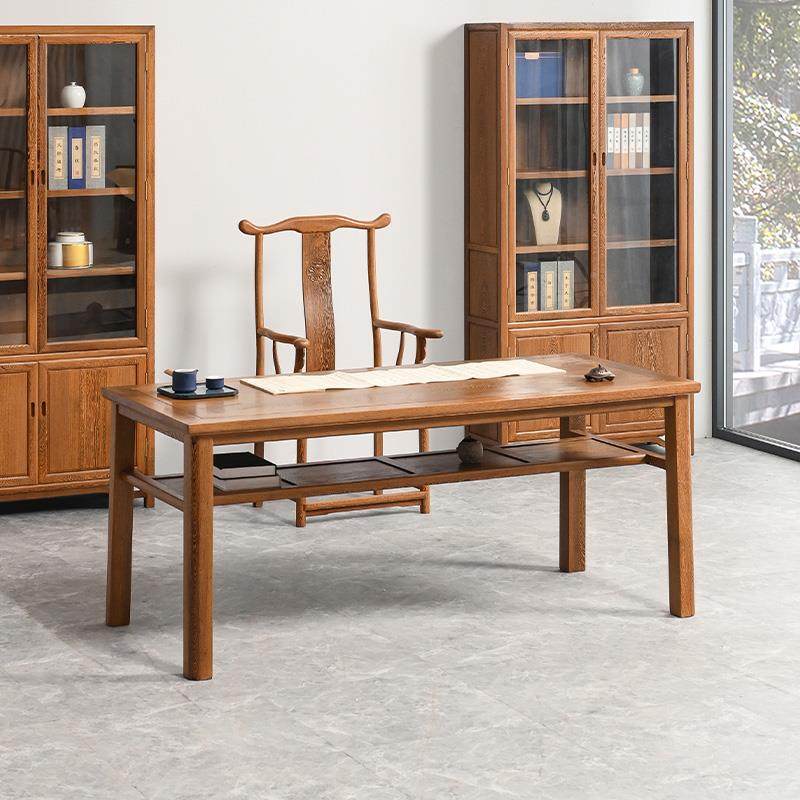 新中式书桌实木画案榆木写字台原木书房家具套装组合多功能办公桌