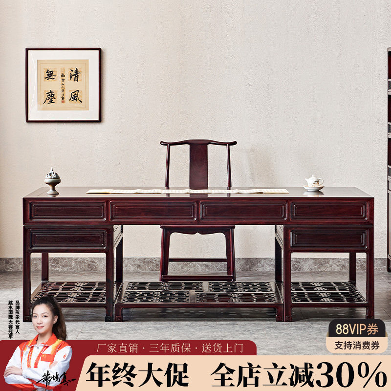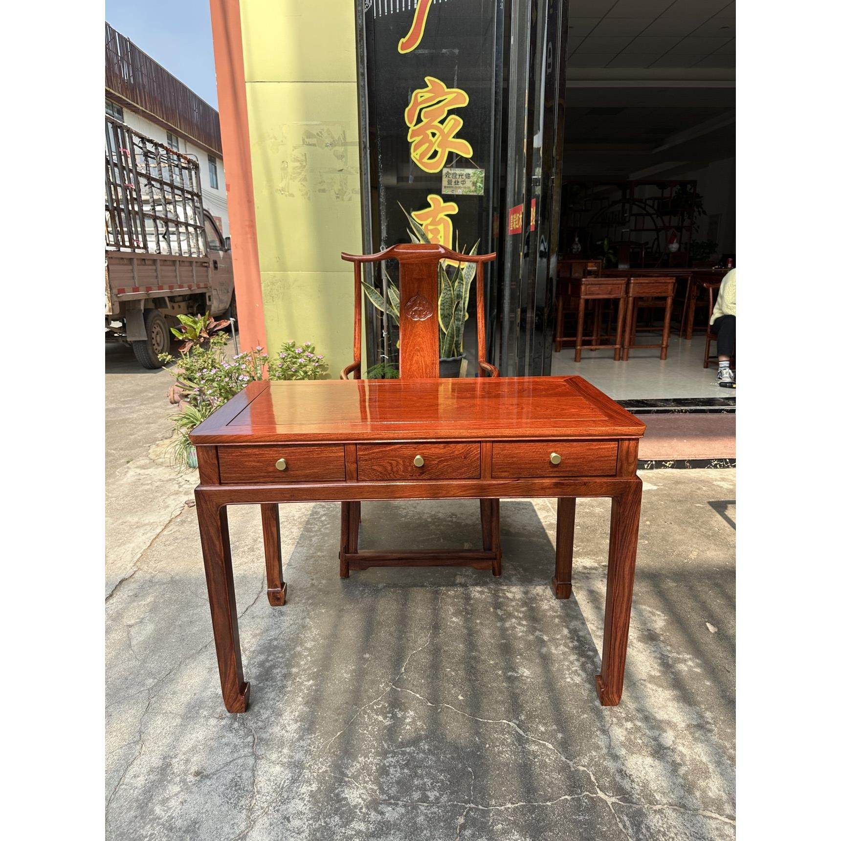 赞比亚血檀写字台办公桌全实木书法桌新中式书桌非洲小叶紫檀画案