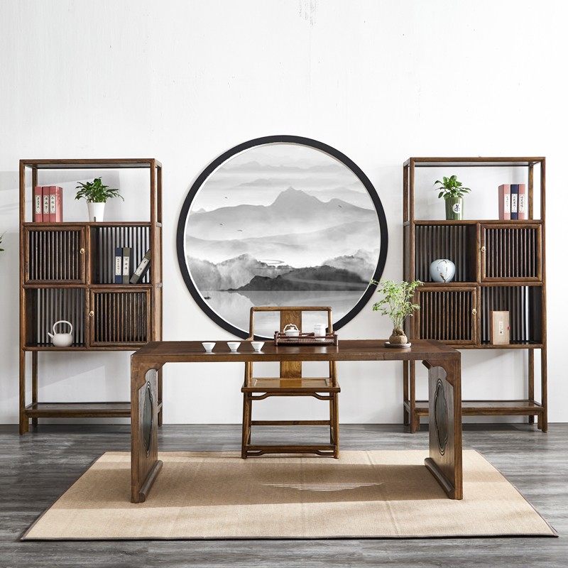 新中式书桌椅子实木 家用北美黑胡桃木画案禅意老榆木彷古书法桌