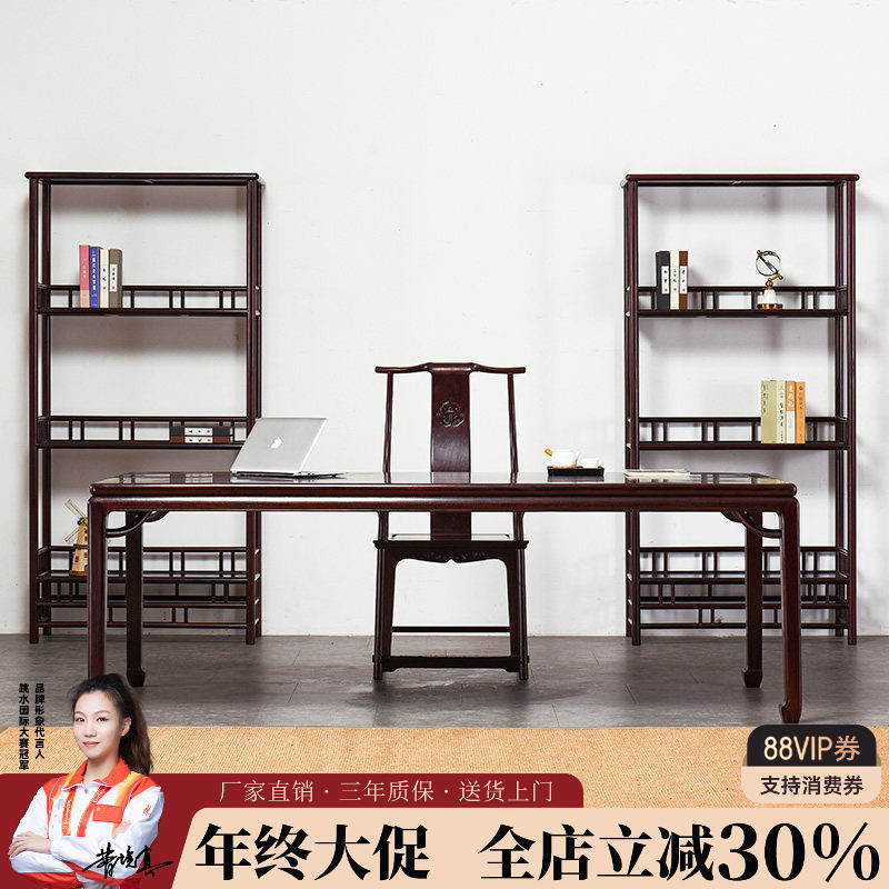 新中式书桌椅子乌金木实木电脑桌书柜组合禅意家用办公桌书房书台