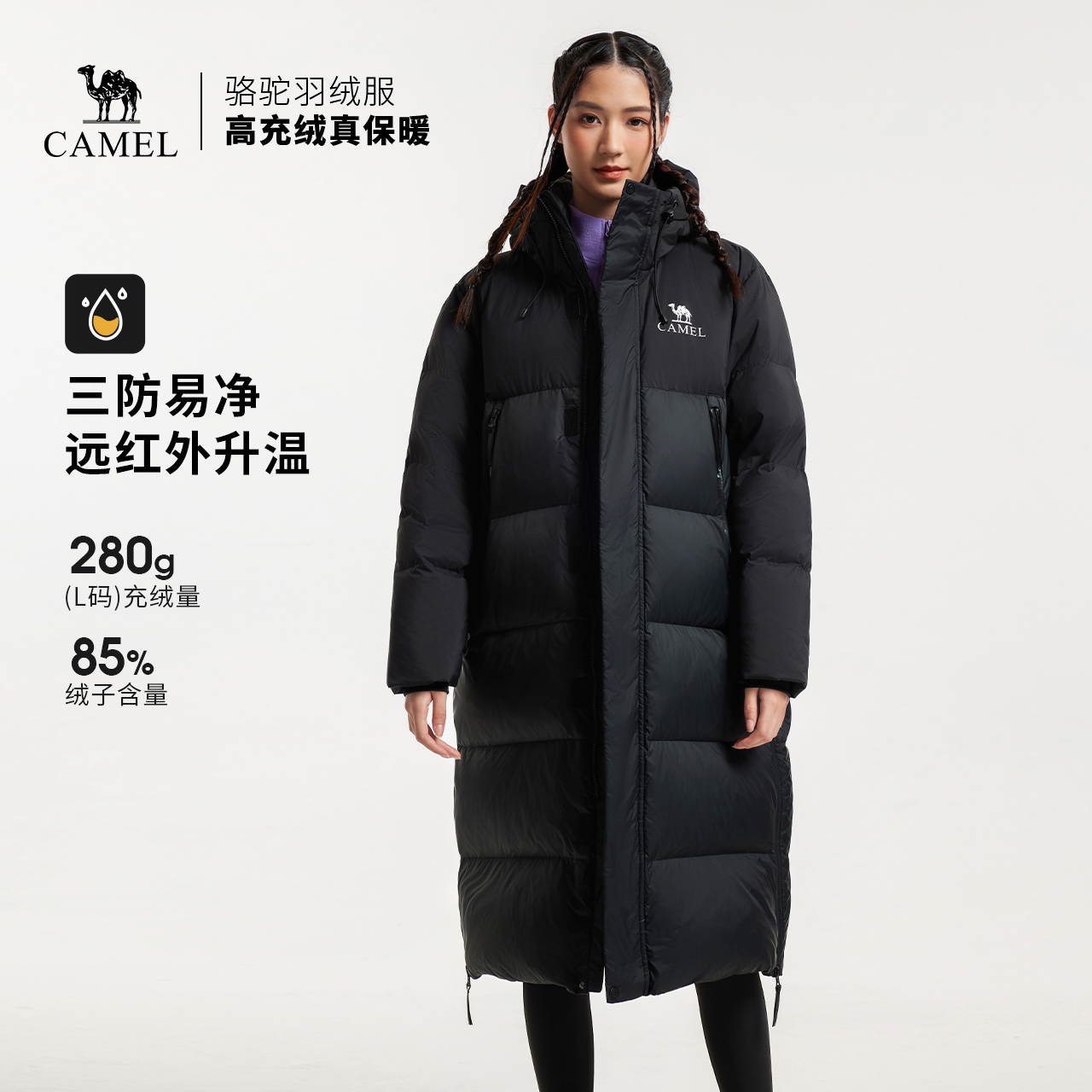 骆驼户外羽绒服冬季新款女款男款保暖防风中长款拒水高蓬保暖外套