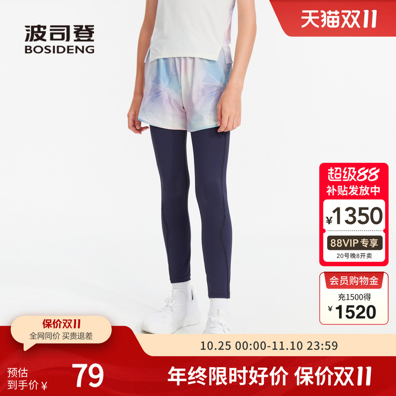 波司登奥莱女童夏季瑜伽裤运动休闲裤裤子打底裤晕染满印清新撞色