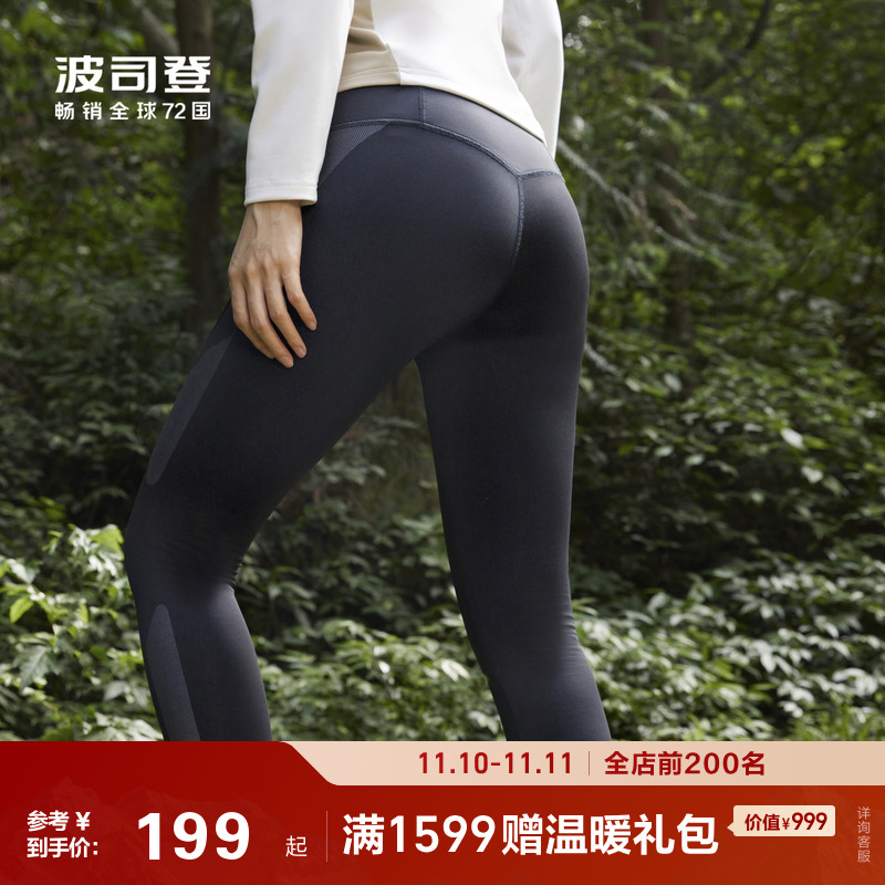 波司登女士户外运动瑜伽裤打底裤鲨鱼裤收腹提臀显瘦B40937024ZB
