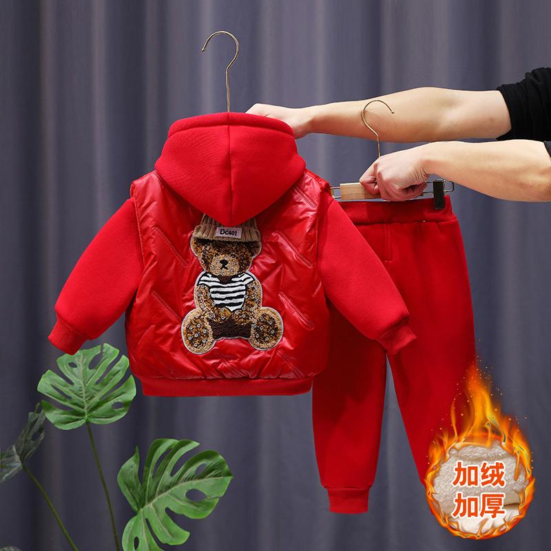 加绒卫衣三件套男女童秋冬季中小童加厚保暖棉服羽绒马甲冬装套装