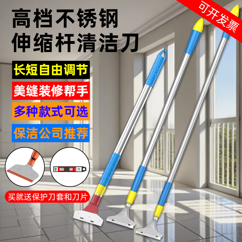 铲刀伸缩不锈钢清洁刀铲玻璃胶地板瓷砖美缝刀墙皮加长柄保洁工具