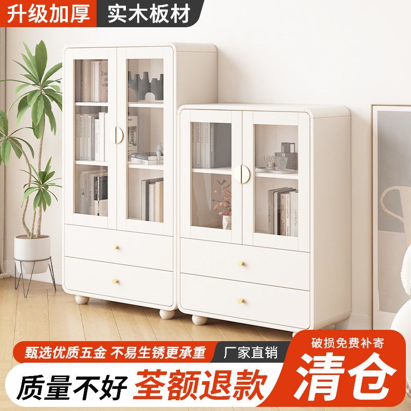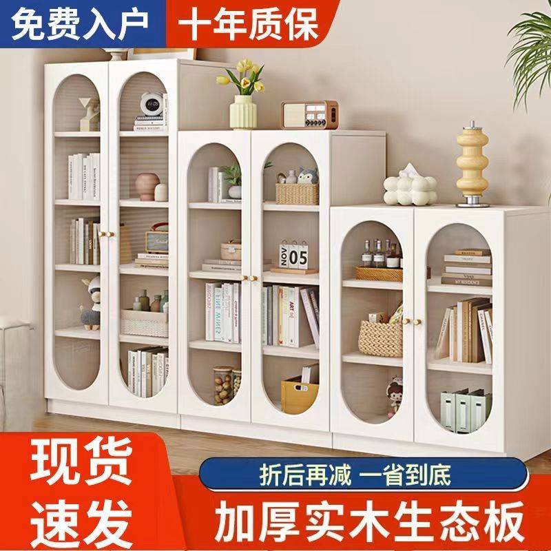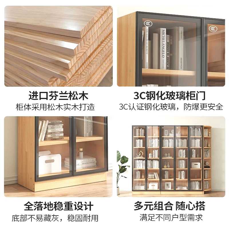 儿童实木书柜书架组合简约防尘玻璃书橱客厅卧室书房储物柜落地柜
