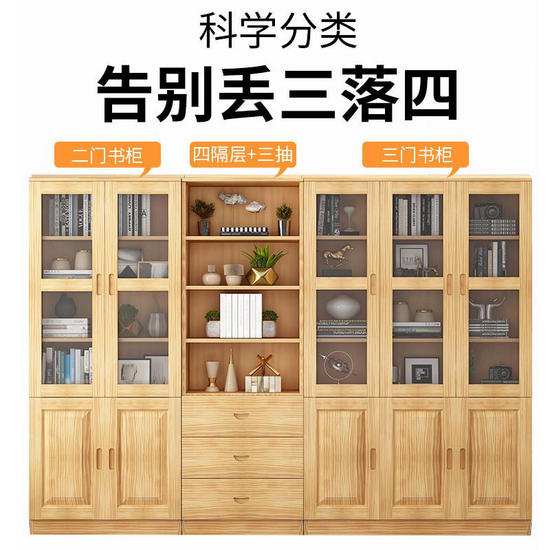 实木书柜书架组合现代简约加厚背板带玻璃门家用多功能储物文件柜
