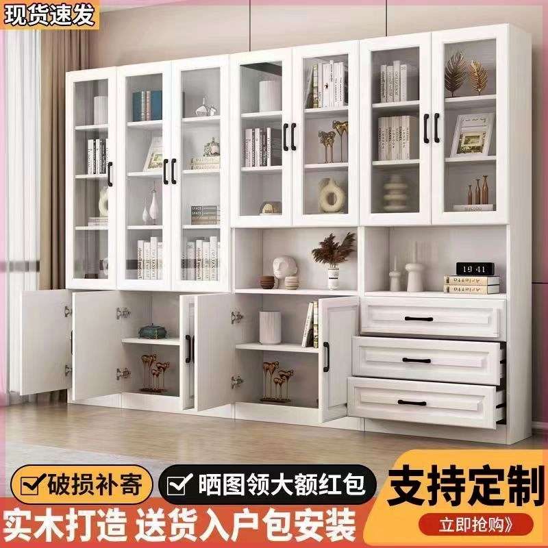 实木书柜书架组合多层简约带玻璃门收纳柜酒柜落地儿童置物柜一体