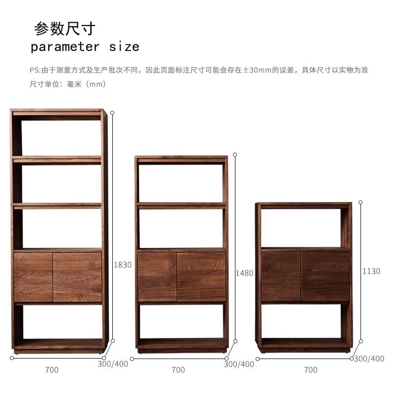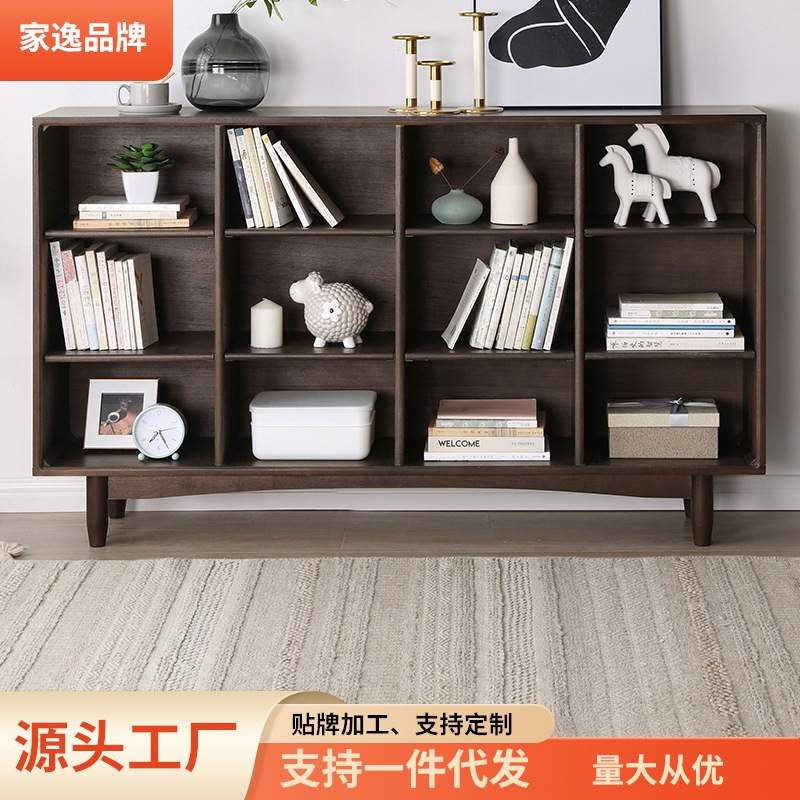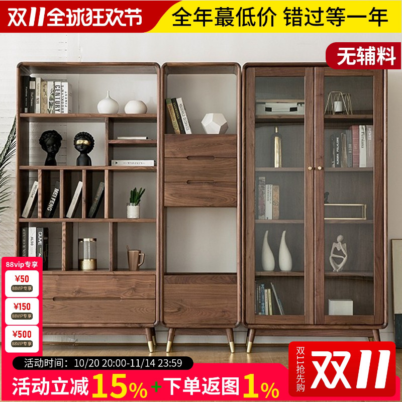北欧简约实木书柜书架组合黑胡桃纯原木开放书房展示柜家用置物架
