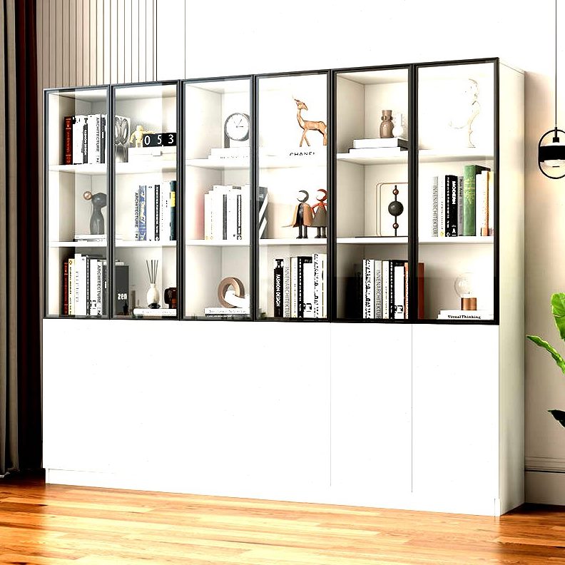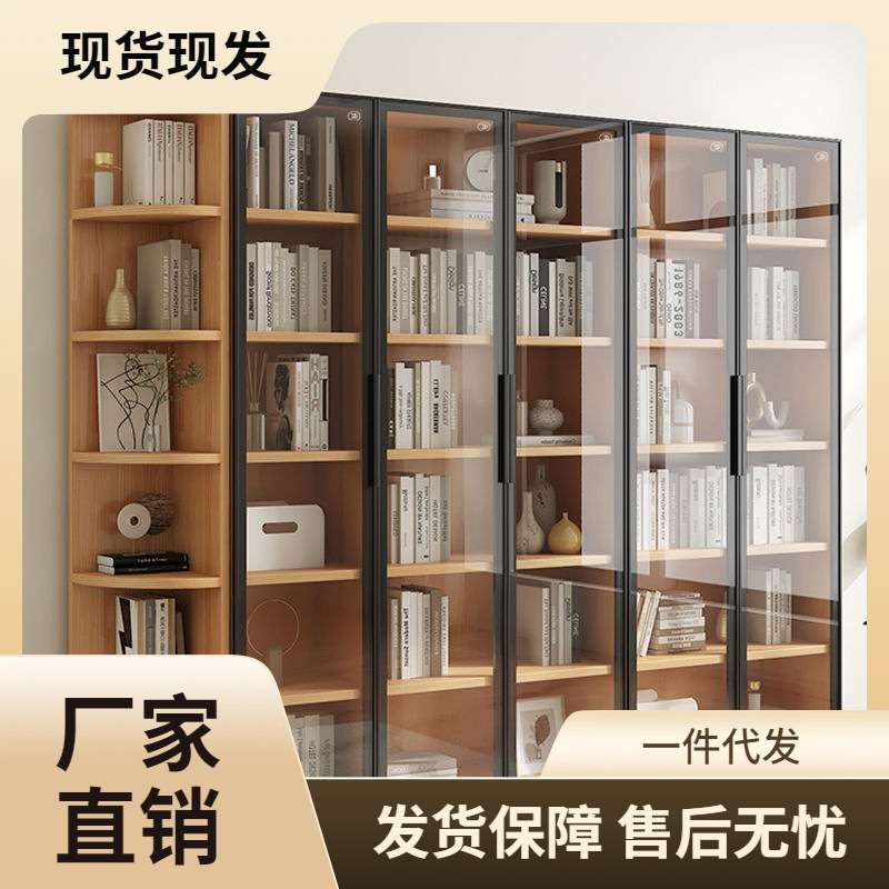 实木书柜书架组合带玻璃门落地简约现代客厅储物书橱办公文件柜子