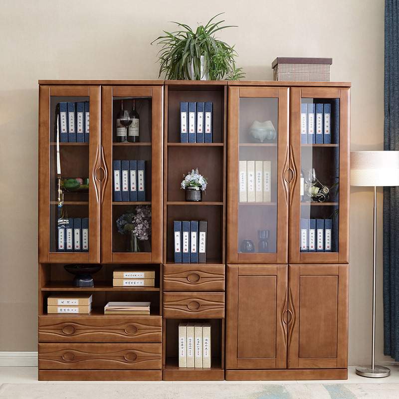 实木书柜书架组合客厅储物柜子玻璃门书橱书房多功能文件柜储物柜
