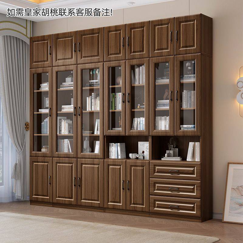 全实木书柜书架组合一体靠墙带玻璃门书橱储物柜落地展示柜置物柜