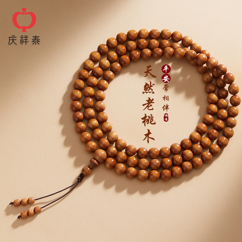 庆祥泰天然桃木手串官方旗舰店女款念珠佛珠手链静心平安木质手串