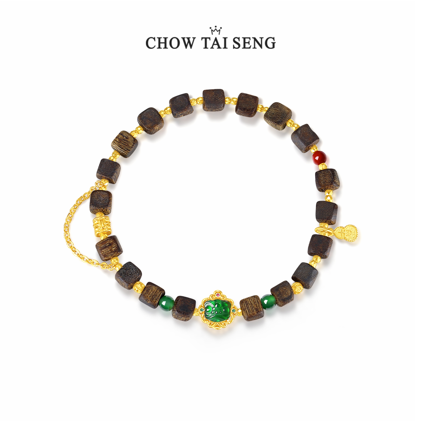 周大生S925银翡翠木质手串沉香木玛瑙高级感手链生日礼物送女友