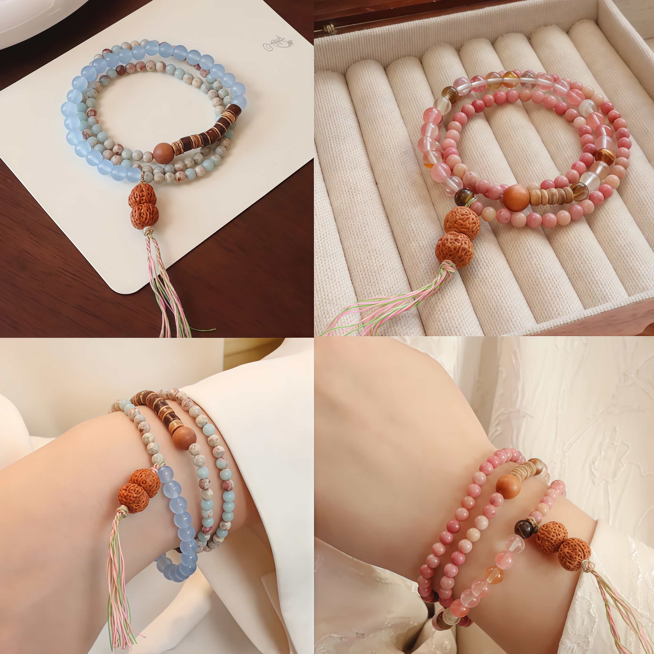 新中式多圈红纹石串珠叠戴手链女款小众高级感木质手串情侣手饰品