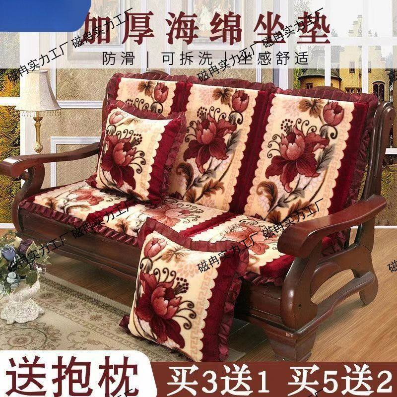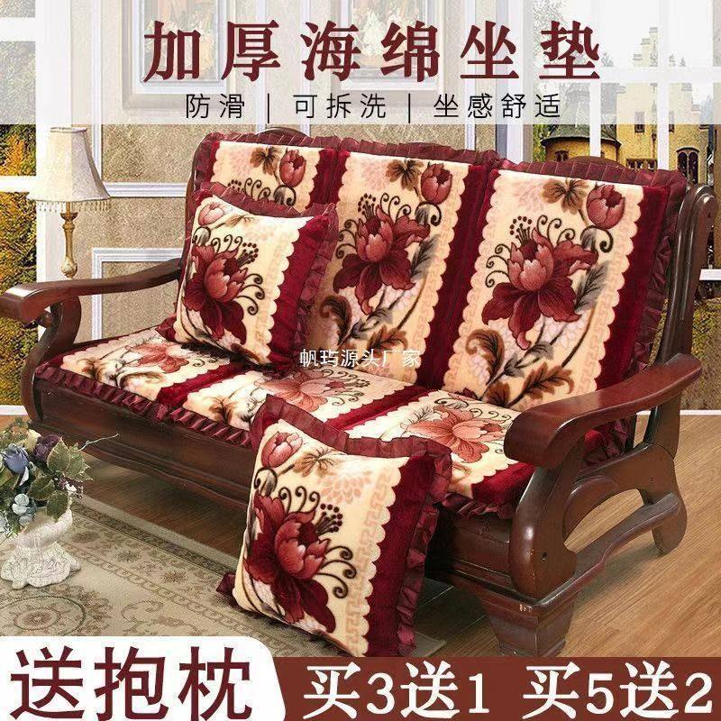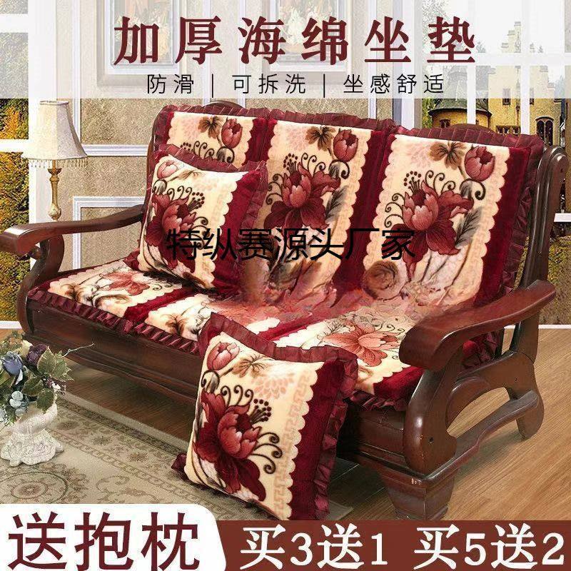 红实木沙发垫坐垫老式木质三人位座垫木头毛绒加厚垫子可拆洗防滑