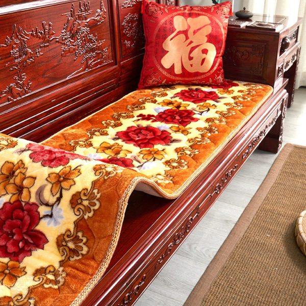 加厚防滑实木红木毛绒毛毯沙发坐垫三件套单人三人四人春秋椅坐垫
