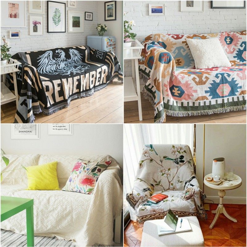 北欧全盖沙发巾单人双三人沙发垫罩双面民宿沙发毯盖布套四季防滑
