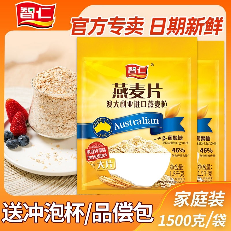 智仁纯燕麦片大片精选澳大利亚进口燕麦粒高纤维高蛋白即食1000克
