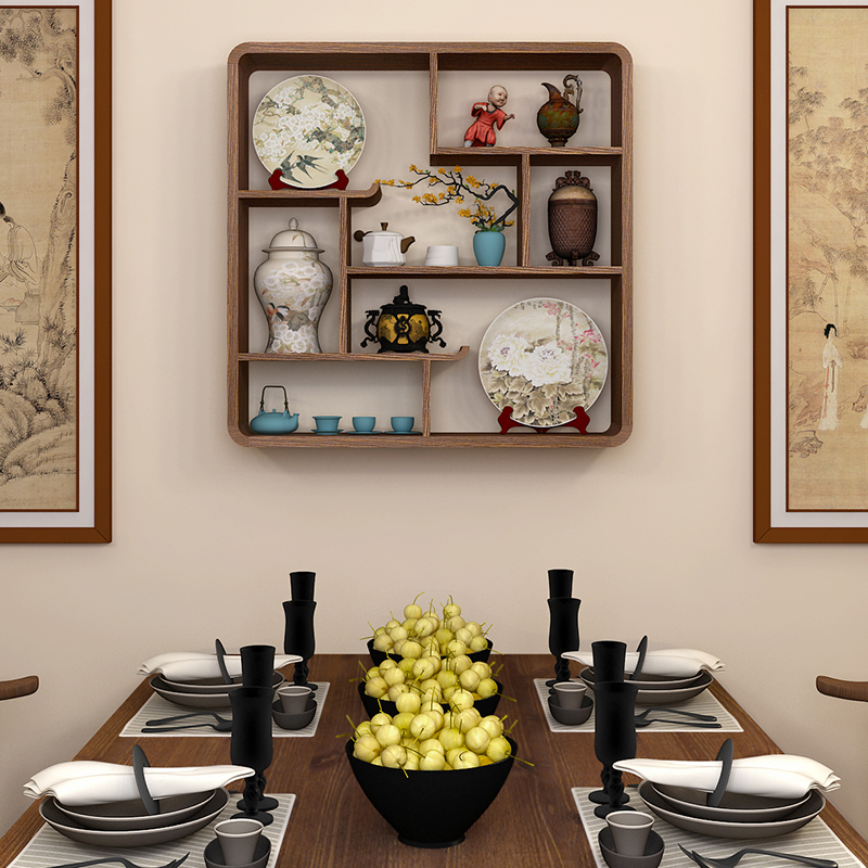挂墙 博古架 实木 中式 多宝阁 壁挂 墙上O 置物架 装饰 茶架
