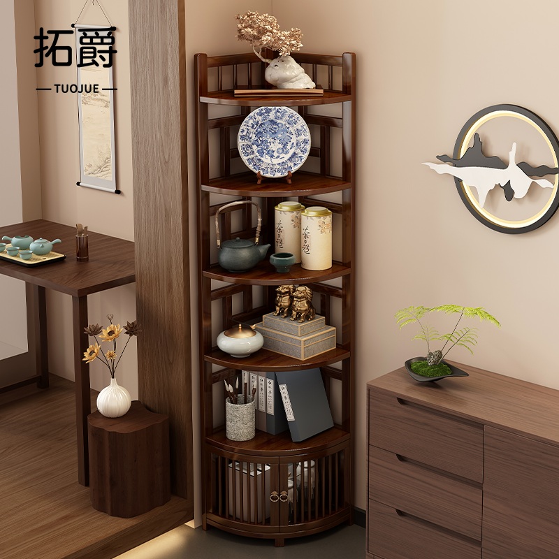 博古架小型新中式茶柜置物架茶室转角柜非实木收纳架子茶叶放置架