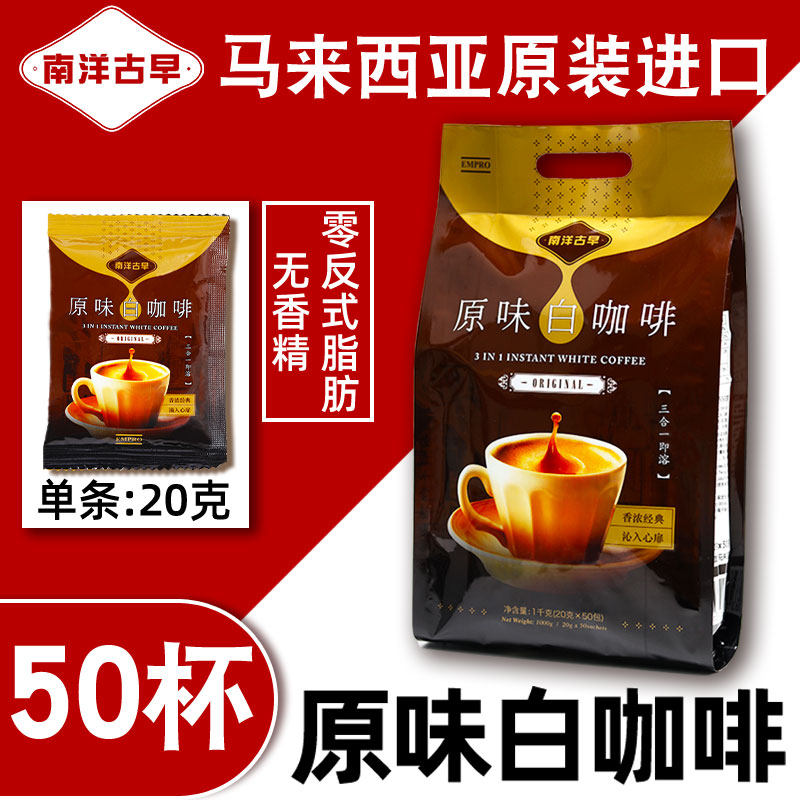 南洋古早马来西亚白咖啡50条装1000克进口咖啡速溶学生奶香味